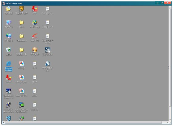 同时弹出一个ICC的共享框,共享框里出现的就是纳税人的桌面(纳税人桌面的背景将被系统自动设置成一种单一的色彩,如下图纳税人桌面背景被设置成灰色,所以坐席看到纳税人的桌面都是单一的颜色),坐席把鼠标放在共享框里,就可以像操作自己的电脑一样来操作纳税人的电脑了。如下图: