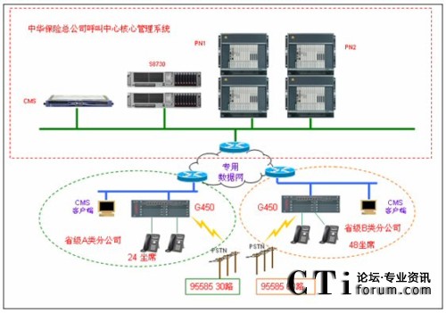 中华联合保险公司全国客户服务呼叫中心系统,由中科软通信事业部负责集成建设。采用呼叫中心整体解决方案,利用全国集中的核心技术平台和公司内部IP骨干数据网络,实现向省级分公司电话中心的快速延伸。达到建设速度快、投产快、产出快、投入少、降低运维管理难度和成本的目标。各省级分公司电话中心的管理和业务受理向省中心集中,实现资源整合、提高管理效率、降低成本的目标。在向集中化和资源共享方向发展的同时,兼顾考虑到部分省分公司、地市的特殊性,提供可控范围内的灵活性和自主性,确保对所有省分公司的高度适用性。实现建设模式的标准化和可重复性,为未来的持续发展和业务的快速扩充奠定坚实的基础。