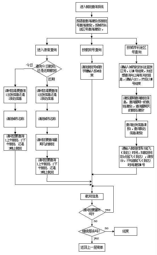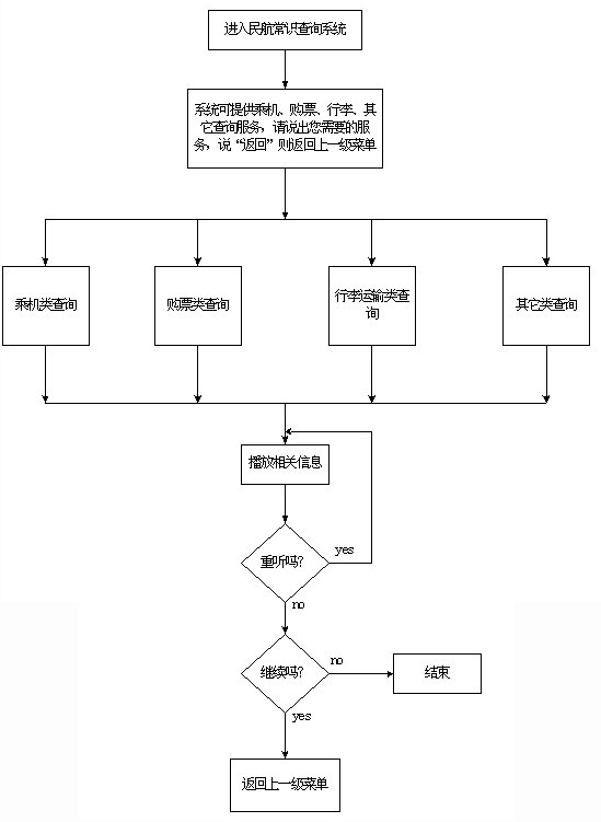 该系统主要采用语音技术实现航班信息查询,系统的主业务流程如图一至五示。