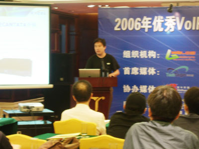 杨波:感谢中宽网信,也感谢VOIP中国给Cantata这样一个机会,有幸和我们广东的VOIP共同来探讨共同来探讨VOIP目前在中国的市场。同时我作为厂家一名销售人员也给大家简单介绍一下,刚刚进入中国时间不长的Cantata公司,我目前负责Cantata产品在中国的销售工作,我们的电话、MSN、E—mail,还有我的QQ,我们做通讯的这些东西一个也不能少。