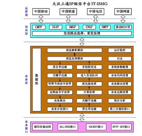 ;国际通用协议 SMPP 3.4 、 SMPP 3.4 ,每个协议实行模块化,开发成对应的动态链接库,并提供统一的接口。