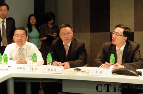 上图:右一为Avaya中国公司总经理王昀先生、右二为Avaya亚太区系统工程总监郑锦鸿