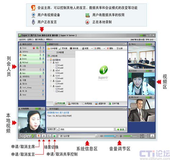 作为业界最优秀的软件视频会议系统,视维视频会议系统以其卓越的音视频质量,强大完善的通讯及协作功能、稳定的系统性能提供给用户一个全方位、多层次、高效率的网络多媒体通讯平台。清晰流畅的高质量音视频效果、全面丰富高效的数据协作功能、简洁易用的操作界面、方便完善的远程管理和维护手段以及先进的系统平台构架,使得视维视频会议系统在功能、性能和技术发展前景上,都有着领先业界的技术和产品优势。
