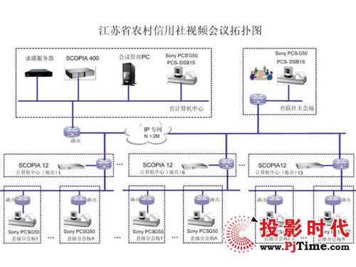 本次设计方案中,上海索高通过对江苏农信社的全省分布和各地实际需求,提供72套Sony PCS-G50视频会议终端,IP网络支持最大4Mbps的视频传输速率,为用户提供4CIF的高质量视频效果,配合H.264的强大功能一起获得更高的媒体处理能力。通过Radvision