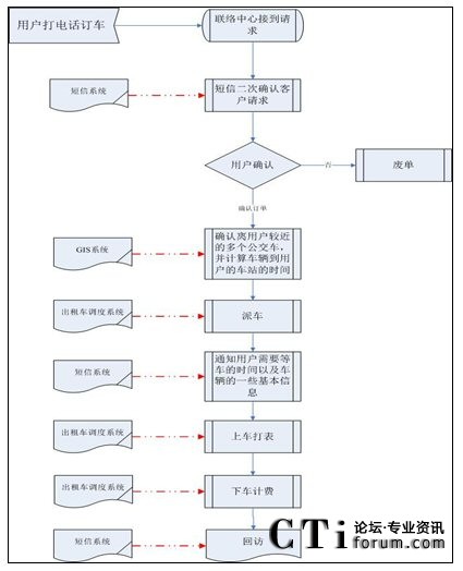 2009年最后一天的午后,我焦急的站在马路上四处张望,在川流不息的车流中寻找一辆打着红灯的出租车,在30分钟之后,我失望了,对这个城市以及对这里的交通。我做了一个大胆的设想,如果我所在的位置恰好有一个出租车停靠站,而停靠站上有一部终端设备类似于一台电脑,输入我的手机号码,可以在这里定任何时刻的出租车,之后我的手机会收到确认短信,确认后会在我绑定的某一个公共消费的银行或是直接有运营商扣除本地出租车的起步价,而同时,会把离我最近,接收到预定的出租车的摘要信息发送到我的手机,例如车主姓名,车牌号等。如果这样,我可能就不会白白的浪费几十分钟的时间来做没有意义的事情了。