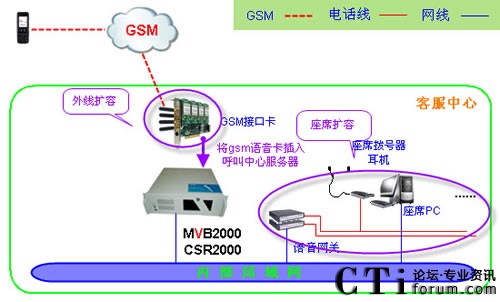 呼叫中心用于多路GSM网络接入、8~12个座席人员使用,要求以后可扩展到20座席人员或者更多。