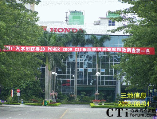 CTI论坛(ctiforum)08月05日消息:2009年7月30日,J.D.Power亚太发布了最新一期2009年中国售后服务满意度指数调研(CSI)报告,广汽本田售后服务荣登汽车行业客户满意度榜首,受到高度赞扬,得到了消费者的肯定。