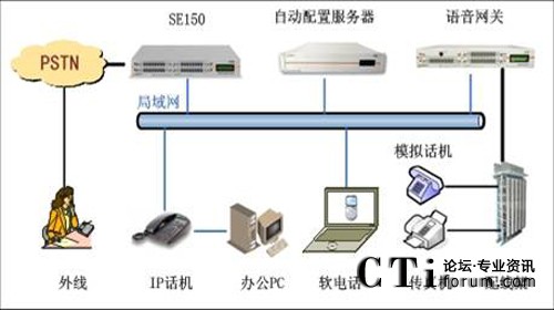 此方案适用于已经部署了传统PBX的企业。要求企业部署好数据网络,如果采用模拟终端,则企业的各个办公点需要先将网络线路和电话线路部署到位,同时企业原有的PBX要预留与SE150对接的接口。