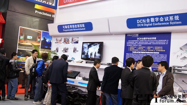 CTI论坛(ctiforum)4月16日消息(记者 杨佳林):4月11日,中国领先的专业视听及集成系统展览会InfoComm China 2012在北京国家会议中心盛大开幕!本届展会规模空前盛大,刷新了历届展会的多项记录。展会规模扩大至四个展厅,展览面积达24,000平方米,参展公司也突破300家,是历来InfoComm China展会规模最大的一次。展示范围覆盖应用于交通能源、教育培训、舞台娱乐、大型场馆、公共卫生、零售、商业、金融、政府等领域的各类视频及音频产品、技术和解决方案。展会持续3天,将集中展出应用于智能建筑、会议、安防、交通能源、政府金融、公共卫生、教育娱乐和企业应用等多个领域的国际领先和国内新兴的技术、集成设备和解决方案,吸引超过12,000名专业买家入场参观。