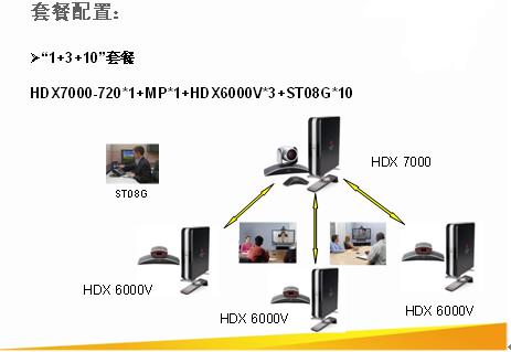总部设HDX7000-720P选配4点内置MCU,大会议室配备一部soundstation IP7000作为拾音麦,美国、上海、深圳等地分别使用HDX 6000V。