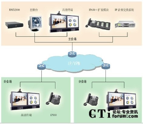 每个会场只需增加一部话机和一个IP地址,无需其他任何交换设备和电话号码资源。