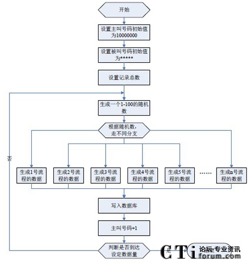 被叫号码固定为:×××××,具体的生成呼叫数据流程图: