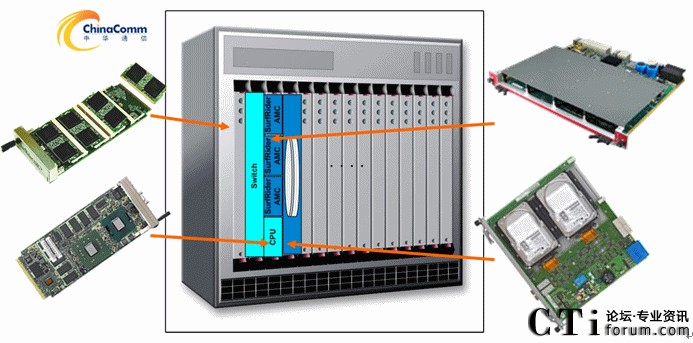 此平台采用ATCA PICMG3.0的标准,组成的部件有: