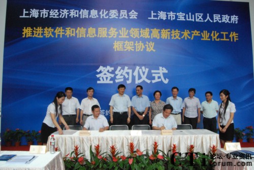 CTI论坛(ctiforum)09月03日消息: 9月2日,上海市经济信息化委员会和宝山区政府签署共同推进软件和信息服务业领域高新技术产业化工作框架协议。双方将围绕上海“加快推进上海高新技术产业化”的总体目标,大力发展宝山区软件研发、电子商务、信息服务外包、数字娱乐、呼叫中心等产业,到2012年底,建成“一带二基地四园区”。“一带”指北上海服务外包产业带,“二基地”指上海呼叫中心产业基地和上海信息服务外包总部基地,“四园区”指动漫衍生产业园、电子商务创新园、北上海数据中心产业园和宝信软件园。