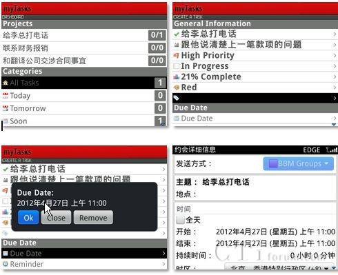 CTI论坛(ctiforum)4月26日消息(记者 欧阳): 再过几天就是五一劳动节小长假啦!节前的最后几天相信大家都在快马加鞭想把手头上的工作尽快处理完毕,好能过个安心的节日假期。我们也特别为大家搜集了黑莓智能手机上能够在效率方面助大家一臂之力的几款应用,希望它们可以在工作生活中为诸位带来切实有效的帮助!