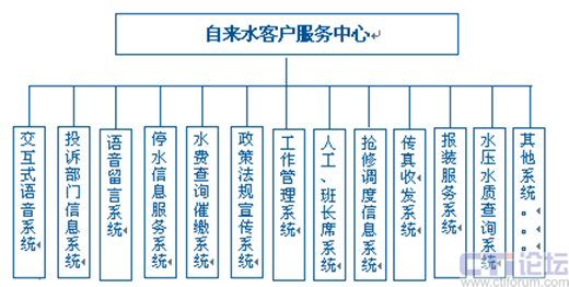 服务中心对外面向用户服务,对内与整个自来水公司相联系,将管理、监控、考核、服务结为一体,它还可以把从用户那里所获得的各种信息、数据全部储存在庞大的数据库中,并能形成各类分析报表,供领导做分析和决策之用。