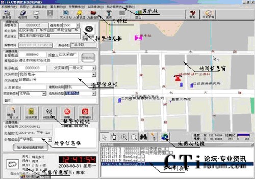 - 电话调度功能: 接警后,可拨打有关科室、消防中队的电话进行调度指挥。并将每次电话形成记录存放在电脑中。 三方通话功能:接警时可同时接通某科室、消防中队等联动单位,实现报警方、接警方、出警方三方通话功能。