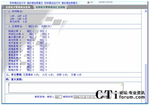 2)用户开始通话,可以实时显示主叫号码、被叫号码、坐席工号、坐席分组号码、通话时间、日期等信息以及磁盘容量设备使用情况等信息。