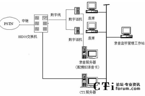 本系统物理结构HXD09交换机、CTI服务器、IVR(交互式语音应答)/IFR(交互式传真应答)服务器、统计维护管理工作站、数据库/应用服务器、录音工作站、网络系统等构成。