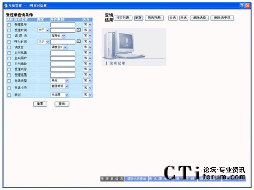 查询:在要查询的字段上打勾,输入要查询字段的信息及各条件间关系,点击“查询”按钮,则在屏幕右侧显示相应的查询结果,可以对这些查询结果进行维护,查询条件可自由定制。