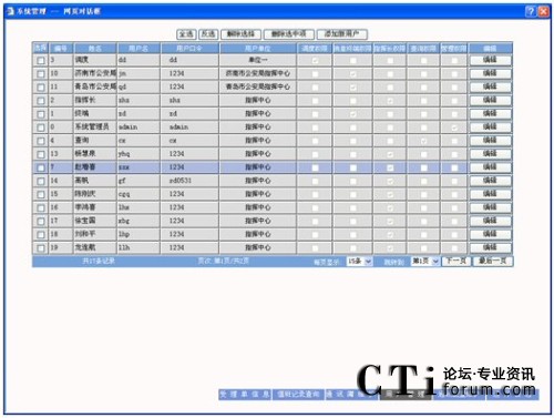 点击 编辑 按钮,显示出修改栏后,对相应的用户数据进行修改,修改内容包括用户的编号、姓名、用户名、单位以及该用户的权限,按确定按钮修改完成。
