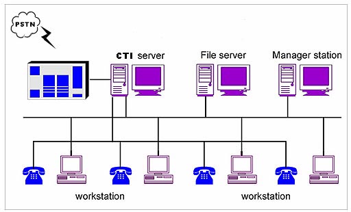 在实际工作中将CTI服务器、管理工作站、文件服务器、坐席工作站集中于一台微机处理。