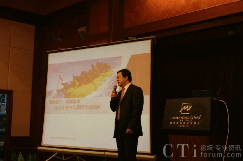 华为软件企业业务副总裁杨晨表示:“稳健成长的华为公司将为客户持续提供优质的解决方案和服务,为用户在3G时代的快速发展提供强有力的支撑;华为软件企业业务关注行业发展及客户需求,通过合作与集成的全新模式与伙伴及广大客户共创“分享?共赢”的未来。”