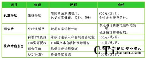 定价:月租方式。每月支付云呼叫中心坐席费用、IVR定制开发费用。