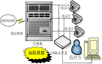 采用对E1线路的录音方案时候,如果中断数量比较多,可以适当增加DXC数字交叉设备,减少E1中断数量,从而达。