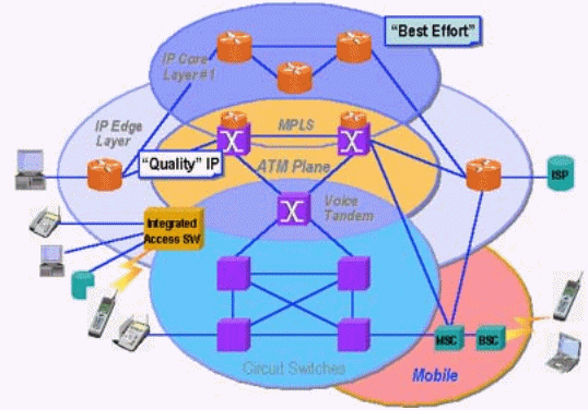 现有的通信网络可分为传统的电路交换网和分组数据网。电路交换网包括固定电话网和移动网,它提供传统的话音和传真的业务。中国的电话用户发展迅速,截至2003年2月,中国固定电话用户为2.21亿,移动电话用户为2.16亿。在今后几年内,传统电话业务仍将是电信市场的主业。稳步发展以电路交换为基础的电话业务,尤其是移动电话业务无疑是中国电信市场发展的主要任务。