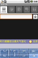 在语搜的下方有滚动的天气信息(手机需支持上网功能),方便用户即使了解天气情况,如图2-6。用户还可以点击滚动条,查看详细的天气信息以及近几日的天气预报,如图2-7。