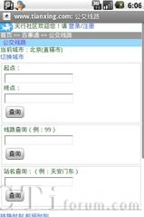 “百事通”是天行社区中一款非常实用的查询工具,您在“百事通”中,可以方便快捷的查询公交、铁路和、航班的路线和时刻,以及如手机号码、邮编、区号等一系列的常用查询,还为股民提供股票资讯的及时查询。此外,“百事通”中还有英语查询、计算器等其他功能,欢迎您来体验“百事通”给您的生活和工作带来的便捷。如图6-3,6-4所示。