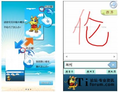 苹果Siri注定让2012成为智能手机产业不平凡的一年,最近苹果Siri又传出消息,中文版即将推出,而在年初,中国第一个能说会听、能写会识,拥有感知与成长能力的智能手机助手;全球第一个拥有生动虚拟形象的手机智能助手 ——“小唐龙”也宣布诞生了!但在市场上却一直未见小唐龙真容,笔者经过天行汇通一位朋友的介绍,终于看到了正在紧张内测的这个可爱的小唐龙,并一手拿着iPhone 4S,一手拿着一款HTC智能手机开始了一些对比。