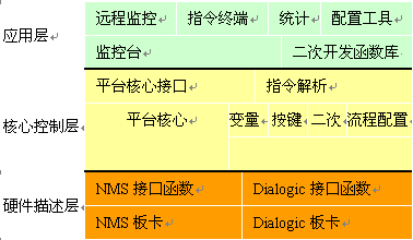 硬件描述层包括不同板卡厂商提供的板卡和相应的板卡开发工具,是实现话路控制和资源控制的基础。此处只列出了Dialogic和NMS两家公司的产品,通过加载不同厂家的板卡开发工具,系统可以支持其他厂家的板卡。
