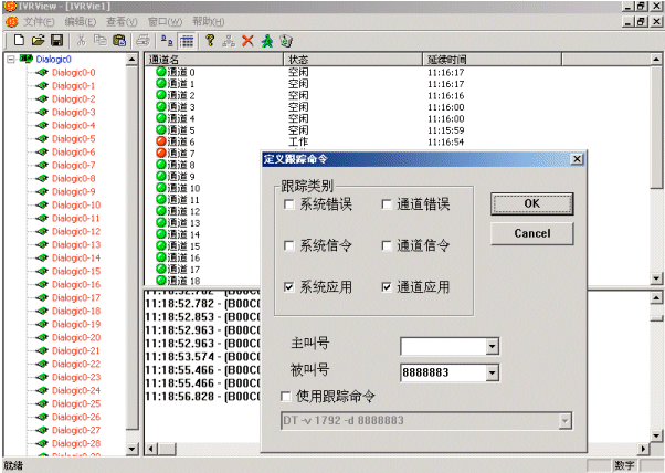 ICANS平台提供监控模块,用于控制ICANS平台的启动和监视平台的工作状况,以及连入其他应用模块。该平台可以以图表方式全屏显示所有线路状态(空闲/拨号/语音/传真)及访问总次数,详细反映每条线路、每个任务的实时运行情况,便于用户及时掌握系统的运行情况。