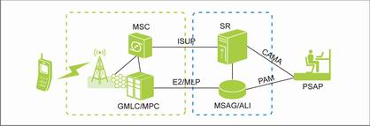 由于移动通信运营商的网络覆盖区域和紧急服务区通常不是一一对应的,因此首先要建立移动网络中每个基站小区和紧急服务区的对应关系,并依照它来把呼叫路由到合适的PSAP去。在现实中,由于多家运营商都需要建立和PSAP之间的冗余的信令和话音通路,从经济的角度考虑,把上述路由功能集中到一些中心交换局,也就是SR(Selective Router)中去实现。这种交换局通常是由已经具备和PSAP之间物理链路的运营商管理,其他的运营商只需要利用这个基础设施就可以了。