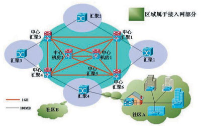 宽带运营商网络结构如图1所示。整个城市网络由核心层、汇聚层、边缘汇聚层、接入层组成。社区端到末端用户接入部分就是通常所说的最后一公里,它在整个网络中所处位置如图1所示。