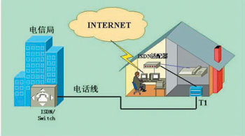 ISDN接入技术示意如图3所示。用户采用ISDN拨号方式接入需要申请开户,初装费根据地区不同而会不同,一般开销在几百至1000元不等。ISDN的极限带宽为128kbps,各种测试数据表明,双线上网速度并不能翻番,从发展趋势来看,窄带ISDN也不能满足高质量的VOD等宽带应用。