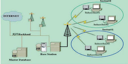 在该接入方式中,一个基站可以覆盖直径20公里的区域,每个基站可以负载2.4万用户,每个终端用户的带宽可达到25Mbps。但是,它的带宽总容量为600Mbps,每基站下的用户共享带宽,因此一个基站如果负载用户较多,那么每个用户所分到带宽就很小了。故这种技术对于社区用户的接入是不合适的,但它的用户端设备可以捆绑在一起,可用于宽带运营商的城域网互联。其具体做法是: 在汇聚点机房建一个基站,而汇聚机房周边的社区机房可作为基站的用户端,社区机房如果捆绑四个用户端,汇聚机房与社区机房的带宽就可以达到100Mbps。