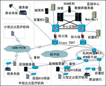 杭州市医疗保险专网的建设目的,是使整个医保系统的资源得到统一管理;即利用杭州市医保中心和各定点医疗网点的交换机、路由器,组成医疗保险系统虚拟专用网,以实现医保政策的控制,信息的统一发布,参保人员医疗费用的实时结算与审核,用户个人帐户的统一管理。