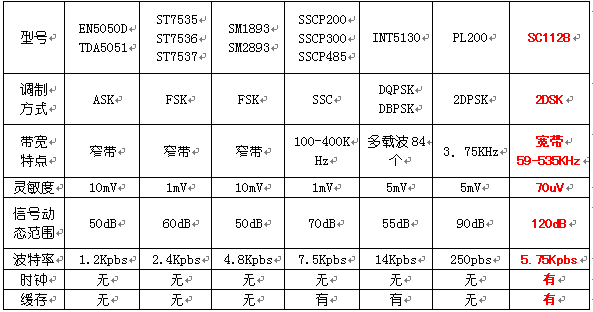 1. 由北京智源利和公司设计开发的SC1128芯片与目前在民用电力线载波通信使用的芯片比较如下: