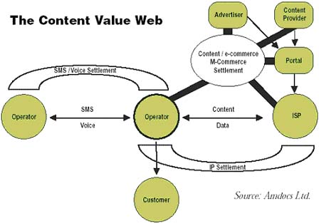 在移动通信领域,服务提供商、第三方内容提供商和ISP之间的内容发送服务收入分享的情况已经出现。如果内容服务真得象预期得那样受到欢迎,价值网中的参与者的数量将会急剧增长,那么对参与者的收入分享进行管理将会比终端用户之间的直接计费关系更为复杂。