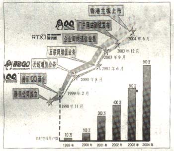 正是凭借着这些优势,即时通信吸引聚集着一些忠诚用户,并开始搭建网络广告、无线增值等一系列各种潜在的交易平台。可以想象,一个绝佳的聊天窗口同时也是一个方便的交易窗口和畅通的付费入口,即时通信正在摸索一条前所未有的盈利模式。有专家指出,经过近5年的曲折前行,即时通信的盈利模式将在2005年逐步明确。以腾讯QQ为例,我们来剖析一下即时通信的盈利模式是如何由模糊走向清晰的。从1999年2月QQ发布到2000年5月,QQ迅速聚拢了10万用户。2000年8月,腾讯公司同广东移动合作,仅仅用了一年就扭亏为盈,实现了1000万人民币的纯利润。