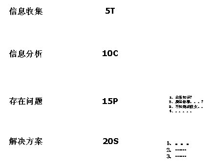 Tables)以及相应的收集方法和时间;第二步是信息分析,明确了如何将已收集的5T(5 Tables)转换成10张图(10 Charts)以便进一步分析;第三步是发现存在问题,明确了如何从10C(10