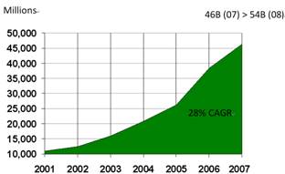 如今的全球化经济正在促使企业打破同事、合作伙伴、供应商和客户之间的地域界限。在许多情况下,面对面的沟通协作既花费昂贵又不合时宜,这推动企业开始转向召开语音会议。对语音会议需求的复合年增长率(CAGR)已达到28%,每年的通话时间很快将超过500亿分钟,如图1所示。