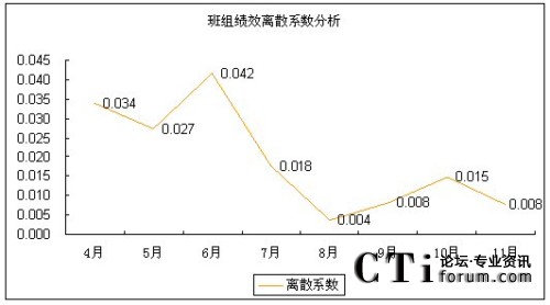 无论从标准差的走势还是从离散系数的走势上来看,8-11月各班组的绩效得分差距明显比4-7月的绩效得分差距要小。从另一个角度来看,就是该呼叫中心各班组的绩效水平更趋于均衡,呼叫中心人员的整体技能和服务水平的二极化差异开始缩小。