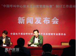 2月7日,中国电子商会呼叫中心与客户关系管理专业委员会(CNCCA)在北京信息产业部万寿路办公区召开“中国呼叫中心技术及运营管理规范”制订工作启动新闻发布会。在京各主要新闻媒体高度关注在国家宏观政策转向服务外包的大背景下,呼叫中心中国标准的出台将为产业的发展和国际竞争格局的变化带来如何的影响。呼叫中心行业各知名厂商、运营商、服务提供商代表出席新闻发布会。会议同时发布了《2007年中国呼叫中心运营标杆管理报告》。