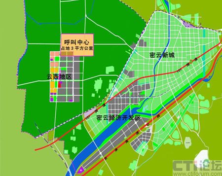 北京呼叫中心产业基地2007年8月经北京市政府批准成立,该基地位于密云新城西部经济开发区内,距密云县城2.5公里,距京承高速路4.5公里,规划占地面积3平方公里。