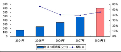 中国移动通信增值业务市场经历了一个曲折的发展历程后开始日趋理性,2007年以来,移动通信增值业务的发展由爆发式增长进入平稳快速发展阶段。据统计,2008年上半年,中国移动增值服务市场规模达672.76亿元,同比增长30%。其中短信市场规模以65.34%的比例位居第一,彩铃和WAP分别以18.07%和8.61%的份额居其次。