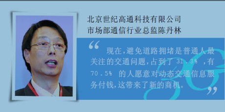 在北京世纪高通科技有限公司市场部通信行业总监陈丹林看来,交通堵塞已经成为现代都市的顽疾,而3G的到来给这一问题的解决带来了新的思路。